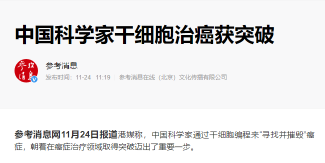 參考消息網(wǎng)11月24日報道港媒稱,中國科學(xué)家通過干細(xì)胞編程來“尋找并摧毀”癌癥,朝著在癌癥治療領(lǐng)域取得突破邁出了重要一步。據(jù)…