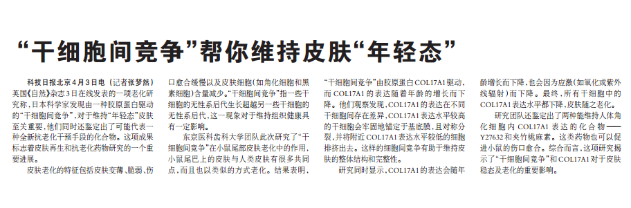 《自然》:“干細(xì)胞間競爭”幫你維持皮膚“年輕態(tài)”!